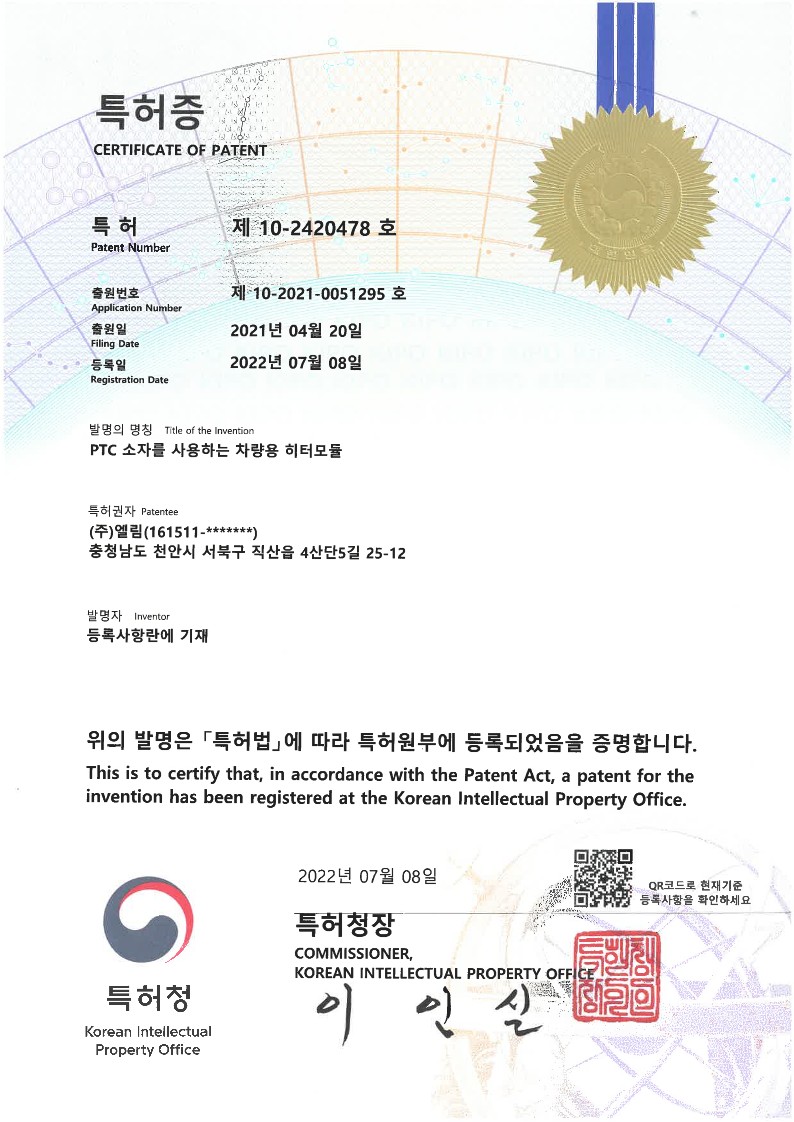 특허 제10-2420478호 페이지 정보 작성자 (주)엘림 작성일 24-03-29 17:20 조회 2,018회 댓글 0건 본문 이전글특허 제 10-2259559호 다음글ISO14001 목록